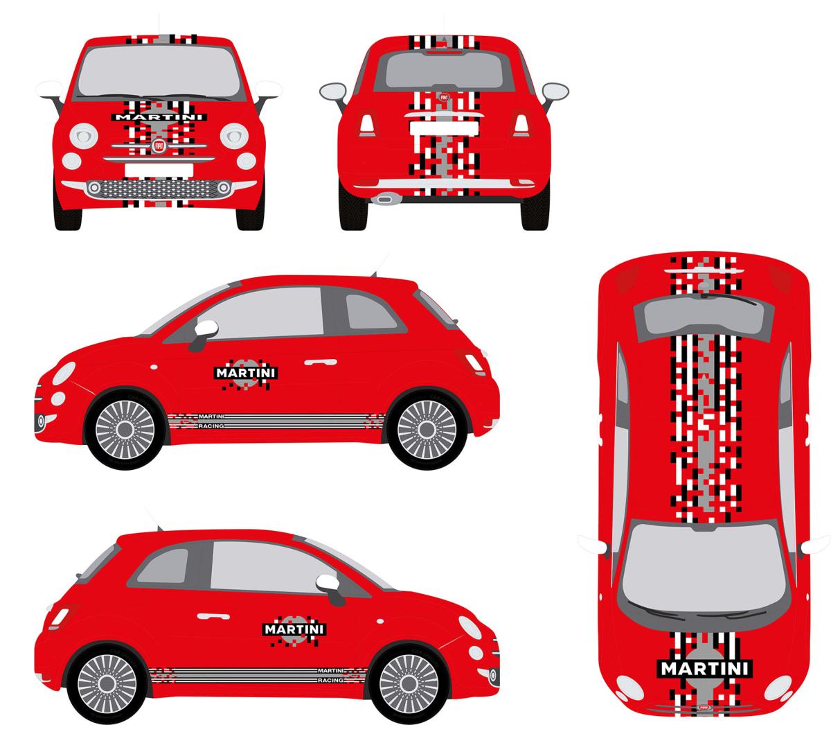 KIT DECO MARTINI PIXELS FIAT 500 - ABARTH Sticker Autocollant Racing Le Mans UNIVERSEL : adaptable tout type véhicule F5MART-PIXELS