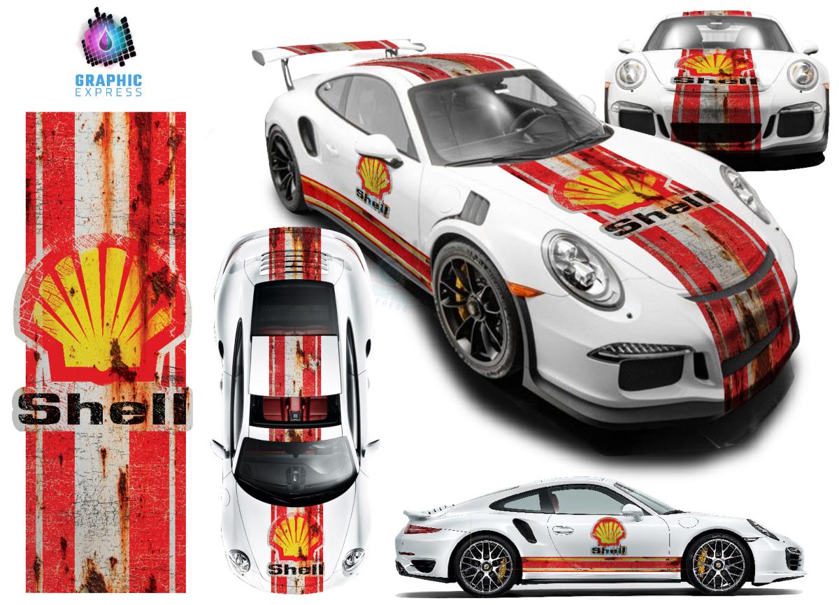 KIT DECO SHELL DESTROY RUSTY NEW STYLE - PORSCHE CARRERA CAYMAN BOXSTER ... STICKERS - Le Mans Stripe UNIVERSEL : adaptable tout type véhicule Type Martini Gulf