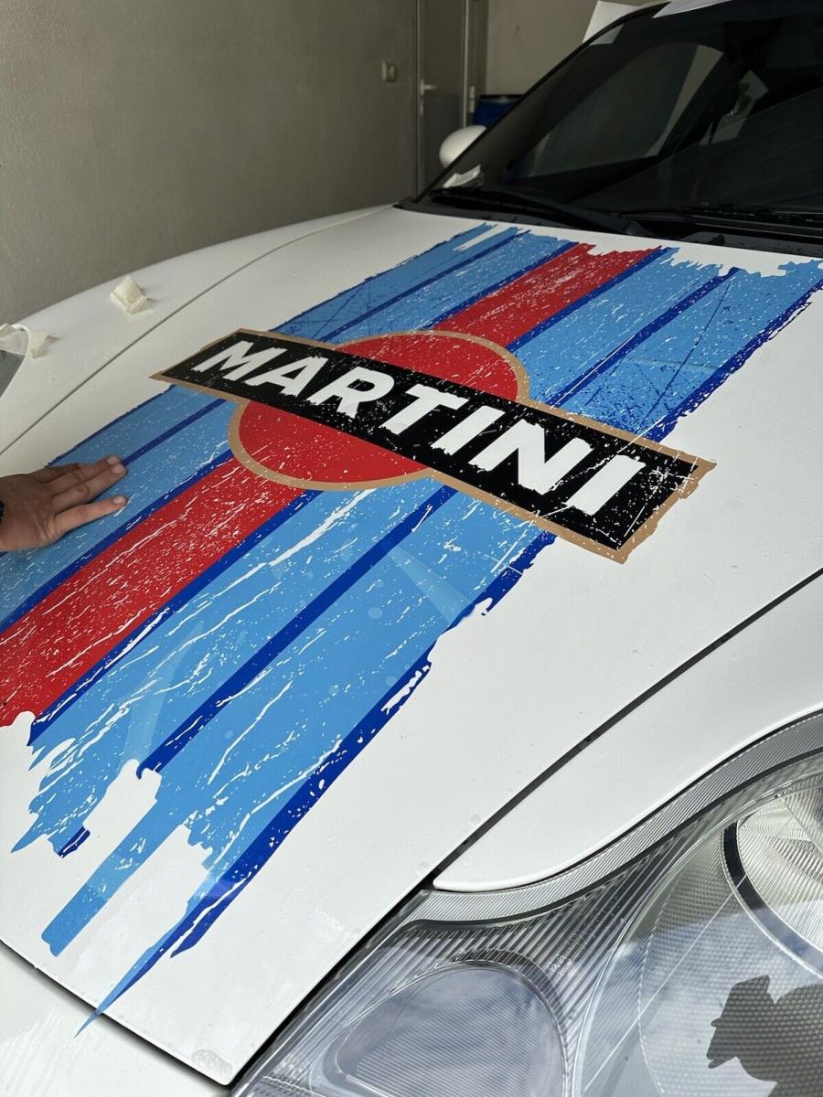 Adaptation logo number 10 : change martini logo by red and white logo 10 keep the same scratch design effect to the number 10 to the 2 logo and hood bonnet.